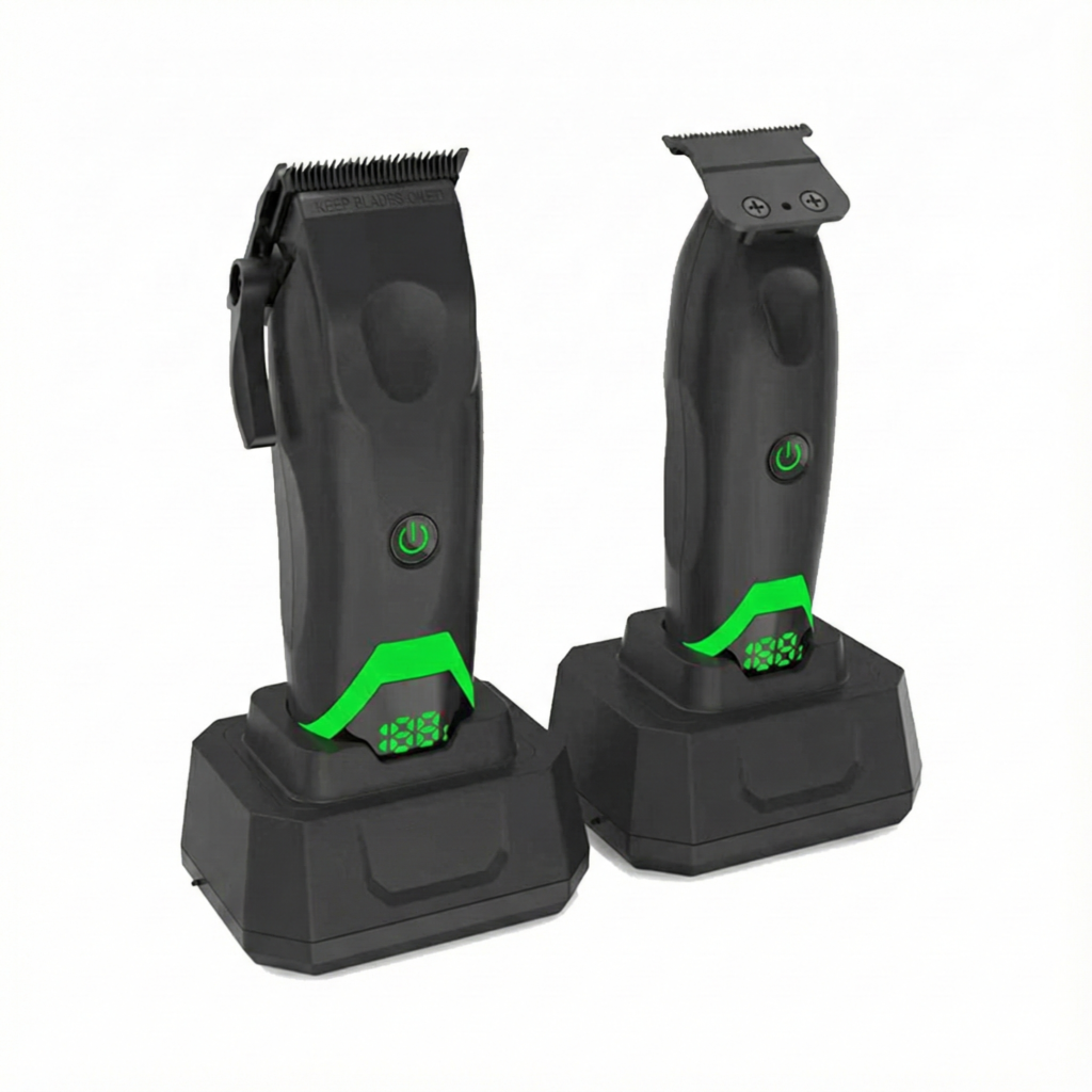 Both the clipper and the trimmer come with their own dedicated charging bases. When you finish a cut, simply drop them into the dock. They look professional standing up on your counter, and they remain fully charged and ready for the next client.